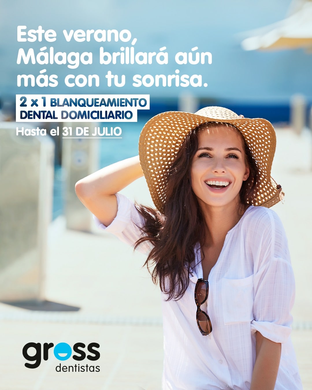 2×1 En blanqueamiento domiciliario hasta 31 de Julio.¡Este verano contamos con una oferta irrechazable! Vente con tu amigo/familiar y consigue esta oferta. Disfruta este verano con una sonrisa Gross Dentistas.