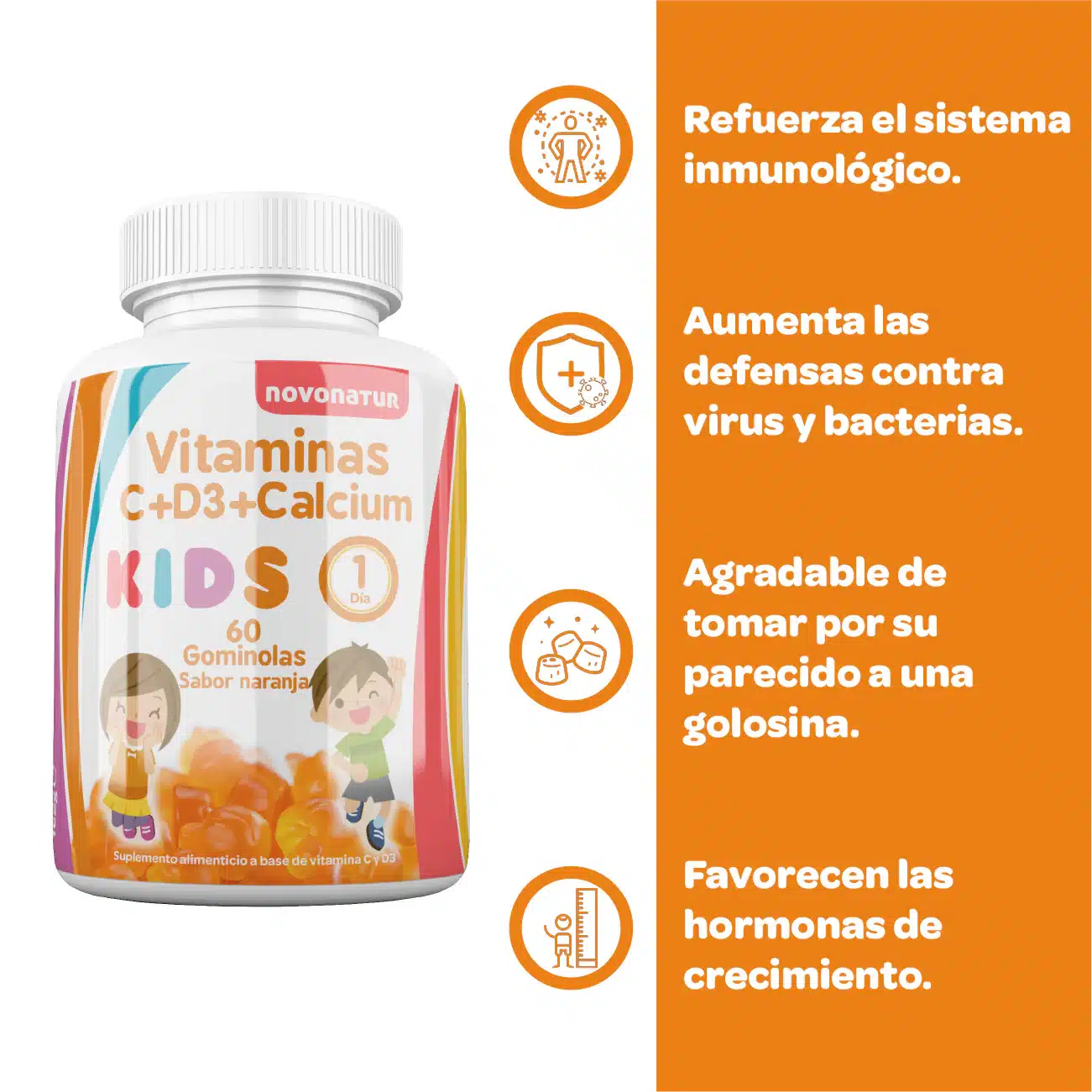 • 💪 VITAMINAS ESENCIALES: En toda etapa de crecimiento hay vitaminas y minerales esenciales para el desarrollo y crecimiento sano de los huesos. Esta combinación de vitaminas C, D3 y calcio es perfecta para ese objetivo en niños, niñas y adolescentes.